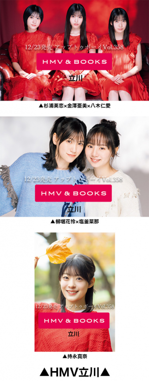 12月23日に発売する『アップトゥボーイvol.358』には僕が見たかった青空から、金澤亜美×杉浦英恋×八木仁愛が表紙巻頭に、持永真奈、塩釜菜那×柳堀花怜が中面に登場。特典が盛りだくさん!