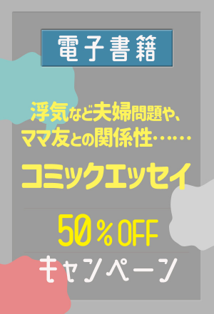 トップページ > フェア情報一覧 > 【電子書籍】浮気など夫婦問題や、ママ友との関係性……コミックエッセイ50%OFFキャンペーン