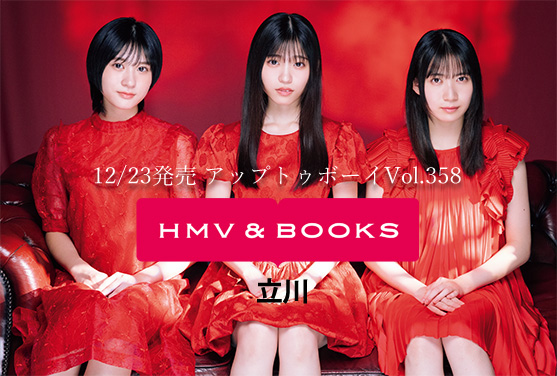 『アップトゥボーイVol.358』の特大ポスター(3種)を店内に掲示。HMV立川で『アップトゥボーイVol.358』をご購入頂いた方に、各1名様に上記ポスターに直筆サインを入れてプレゼントする抽選券をお渡しします。